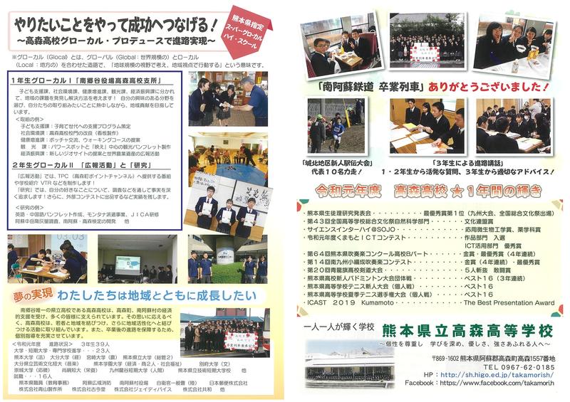 高森高校 進学実績-〒 熊本県阿蘇郡高森町高森1557番地 熊本県立高森高等学校 TEL 09 FAX 09 Email takamorih@prefkumamotolgjp高森町立高森東学園義務教育学校 TEL 09/FAX 09 email higashijh@tkbbjp
